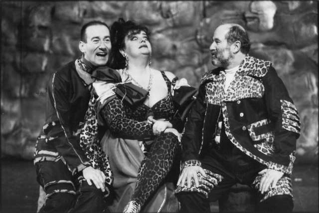 Na fotografiji: Ljerka Belak (Mati Ubu), Janez Hočevar (Oče Ubu) in Boris Ostan (Kapetan Bordure/Finančni dihur/Luknja)