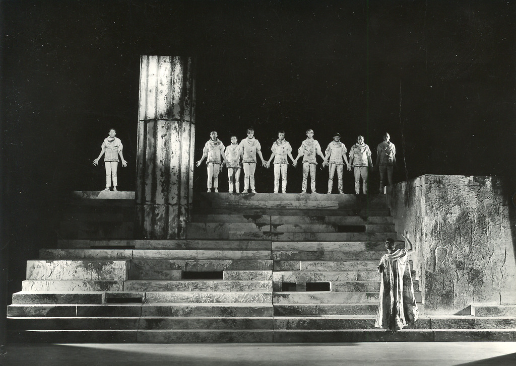 Sofoklej: Antigona. Teatr Współczesny Szczecin, 20. 9. 1968, rež. Marek Okopiński. Na fotografiji: Bohdan Janiszewski (Vodja zbora), 2