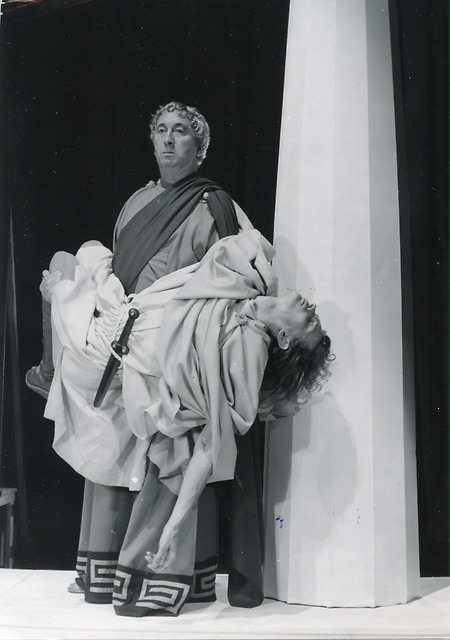 Sofoklej: Antigona. Teatr Dramatyczny Walbrzych, 26. 7. 1973, rež. Maryna Broniewska. Na fotografiji: Roman Sikora (Kreon), Jacek Opolski (Haimon), 2