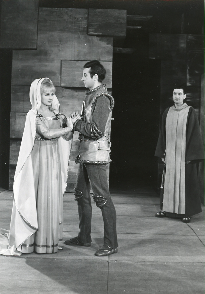 William Shakespeare: Romeo in Julija. Teatr im. Wojciecha Bogusławskiego, Kalisz, 16. 3. 1967, rež. Jitka Stokalska. Na fotografiji: TRoman Michalski (Paris), Halina Kowalska-Nowak (Julija), Kazimierz Gawęda (Fra Lorenzo), 2