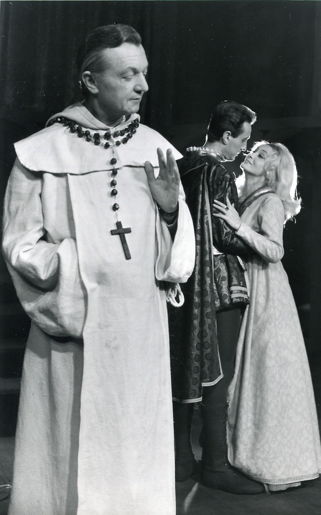 William Shakespeare: Romeo in Julija. Teatr Ziemi Pomorskiej, Grudziadz, 25. 1. 1968, rež. Joanna Koenig. Na fotografiji: Wiesław Cellari (Romeo), Gizela Piotrowska (Julija), Stanisław Dawczyk (Fra Lorenzo), 3