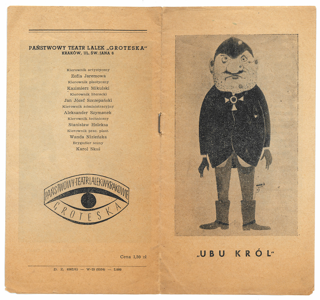 Gledališki list prve profesionalne poljske uprizoritve Kralja Ubuja, Teatr Groteska, Krakow. 14.12.1965, rež. Zofia Jaremowa., 1