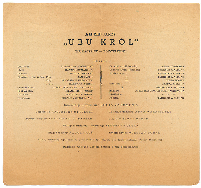 Gledališki list prve profesionalne poljske uprizoritve Kralja Ubuja, Teatr Groteska, Krakow. 14.12.1965, rež. Zofia Jaremowa., 2