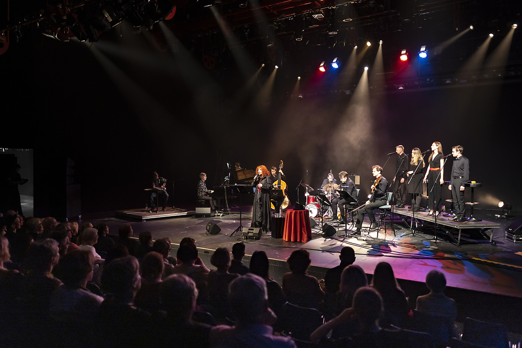 58. Festival Borštnikovo srečanje, 2023. Vita Mavrič, Jani Kovačič: Kontra-Alba, Produkcija Teater, Dodatni program, Tribuna na odru Dvorane Ondine Otta Klasinc, Fotografija 69