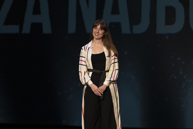 Na fotografiji: Mojca Madon ob prejemu Borštnikove nagrade za režijo za predstavo 52 hertzov v produkciji Slovenskega narodnega gledališča Nova Gorica
