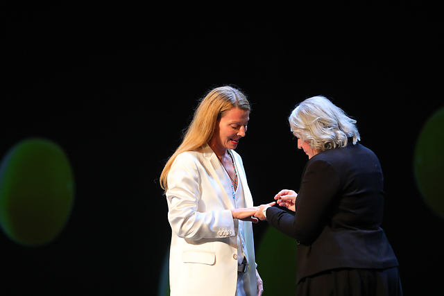 Na fotografiji: Nataša Matjašec Rošker, prejemnica Borštnikovega prstana 2023 in Milada Kalezić, prejemnica Borštnikovega prstana 2011