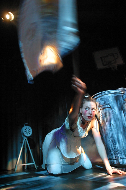 Na fotografiji: Nataša Matjašec Rošker v predstavi Preganjanje in umor Jean-Paula Marata, kakor ju prikazuje charentonska igralska družina v režiji gospoda De Sada v režiji Matjaža Pograjca.