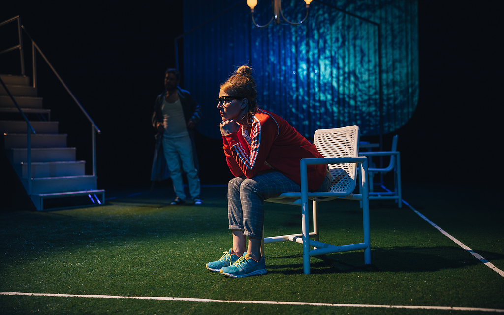 Na fotografiji: Nataša Matjašec Rošker in Kristijan Ostanek v predstavi Vanja, Sonja, Maša in Špik v režiji Dina Mustafića.