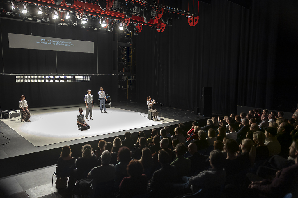 59. Festival Borštnikovo srečanje, 2024. Angel zgodovine, Sotterraneo (IT), Spremljevalni program, Tribuna na odru Dvorane Ondine Otta Klasinc, Fotografija 4