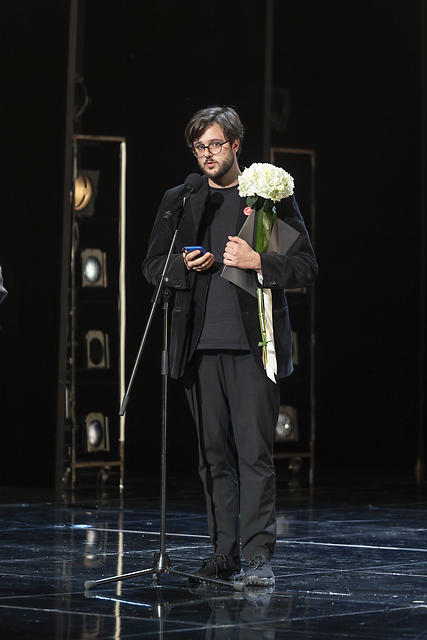 Na fotografiji: Jan Krmelj ob prejemu Borštnikove nagrade za režijo predstave Razpoka v produkciji Mestnega gledališča ljubljanskega