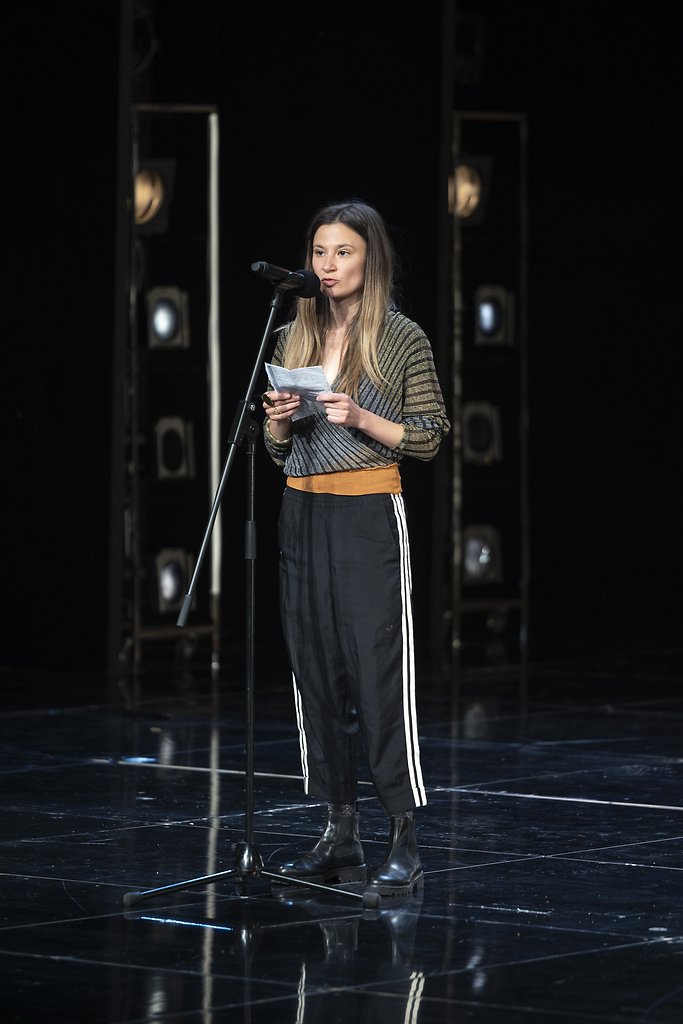 Na fotografiji: Nina Rajić Kranjac ob prejemu Velike Borštnikove nagrade za najboljšo predstavo za predstavo Angeli v Ameriki v režiji Nine Rajić Kranjac in v produkciji Slovenskega mladinskega gledališča