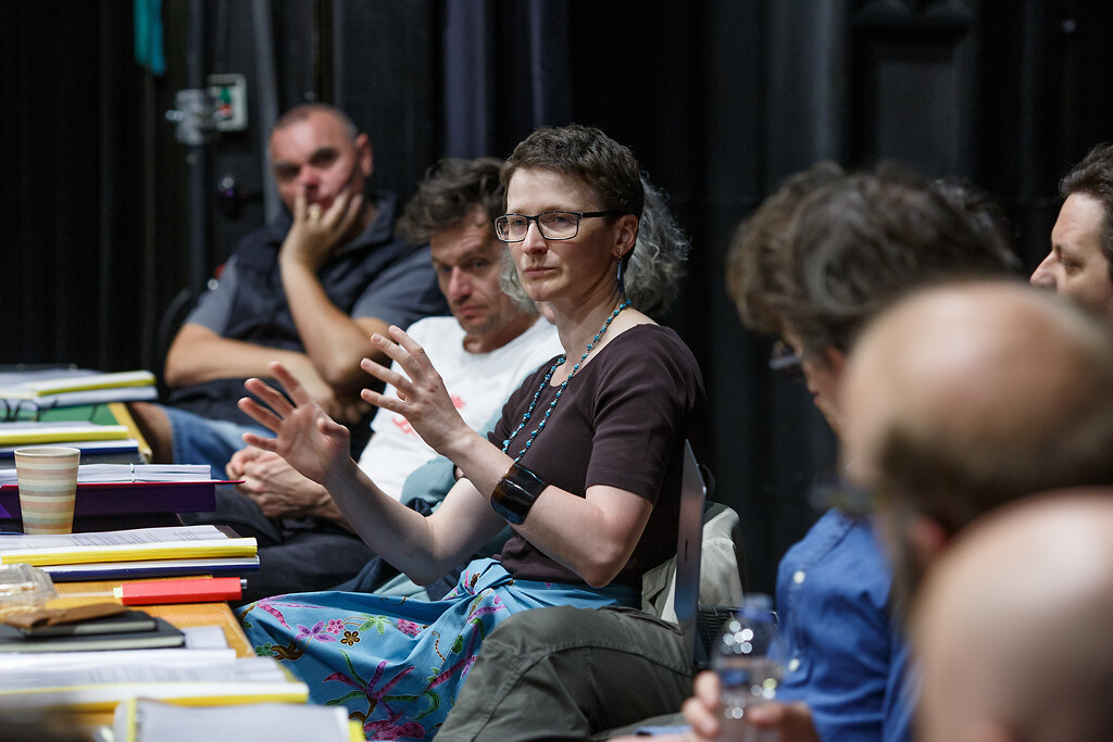 Tony Kushner: Angeli v Ameriki. Pred pragom tisočletja in Perestrojka, Slovensko mladinsko gledališče, 2023/2024. Uvodna vaja, Fotografija 3