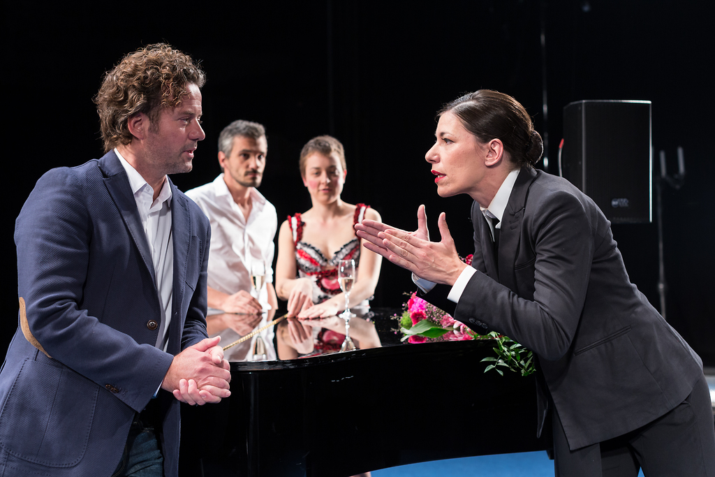 Na fotografiji: Minca Lorenci (Armanda) in Vojko Belšak (Krizald), v ozadju Primož Vrhovec (Klitander) in Liza Marija Grašič (Henrieta)