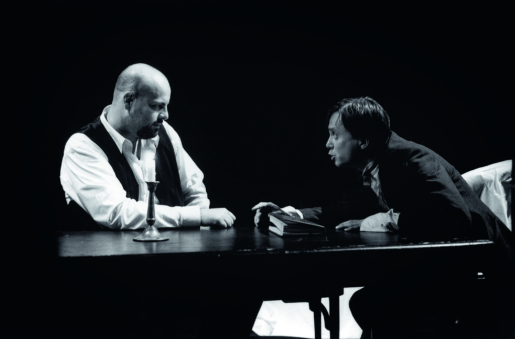 Na fotografiji: Jernej Šugman in Branko Šturbej v predstavi Idiot v režiji Mileta Koruna.
