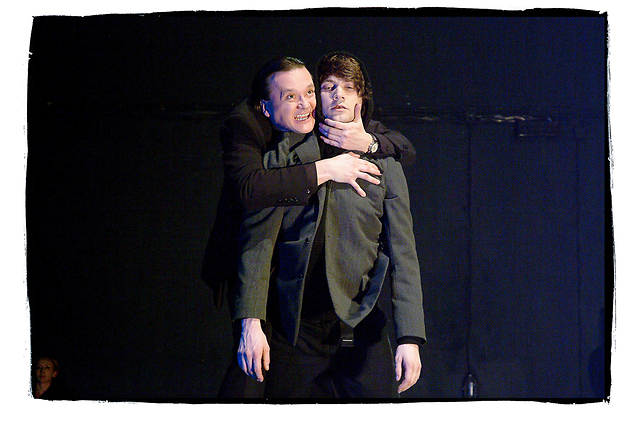 Na fotografiji: Branko Šturbej in Branko Jordan v predstavi Wethter & Werther v režiji Eduarda Milerja.