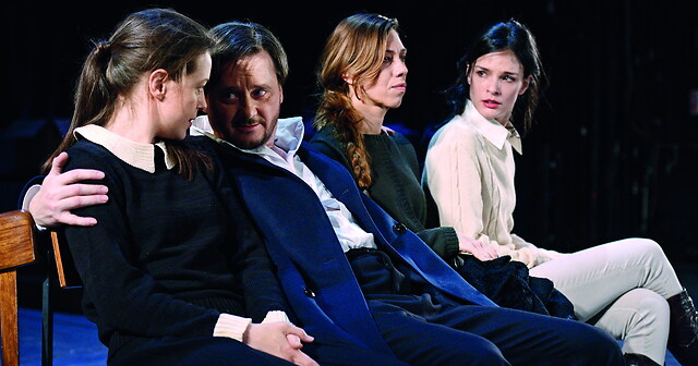 Na fotografiji: Branko Šturbej, Nina Ivanišin, Branko Šturbej, Alida Bevk in Tina Vrbnjak v predstavi Tri sestre v režiji Janusza Kice.