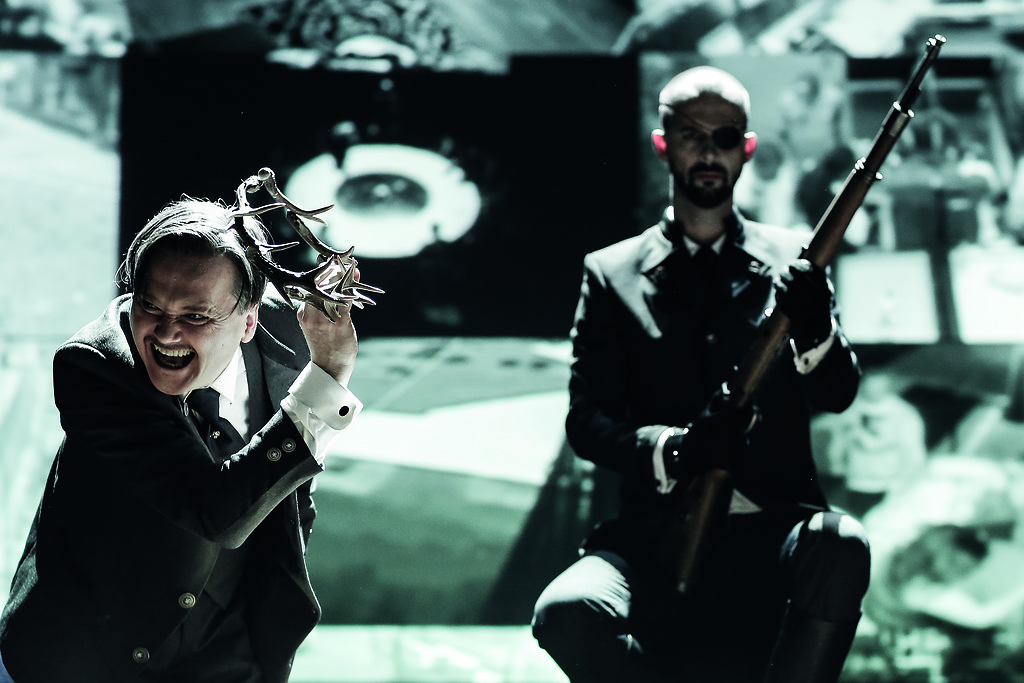 Na fotografiji: Branko Šturbej in Uroš Fürst v predstavi Rihard III. + II. Po Rihardu III. in Rihardu II. v režiji Tomaža Pandurja.