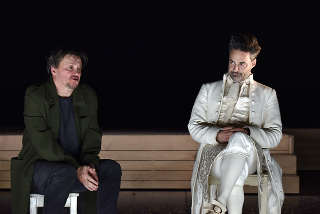 Na fotografiji: Branko Šturbej in Rok Vihar v predstavi Jacques in njegov gospodar v režiji Doriana Šilec Petka.