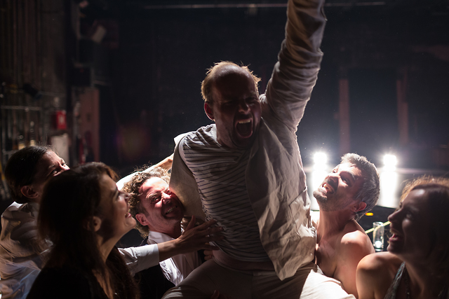 Na fotografiji: Vojko Belšak (Krizald), Pia Zemljič (Filaminta), Barbara Medvešček (Beliza), Gregor Zorc (Trissotin) in Primož Vrhovec (Klitander) ter Minca Lorenci (Armanda)