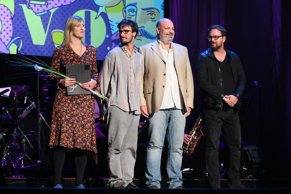 Prejemniki nagrade za kolektivno avtorsko idejo celostnega oblikovanja odmora pri predstavi Kralj Ubu v izvedbi SNG Drama Ljubljana.