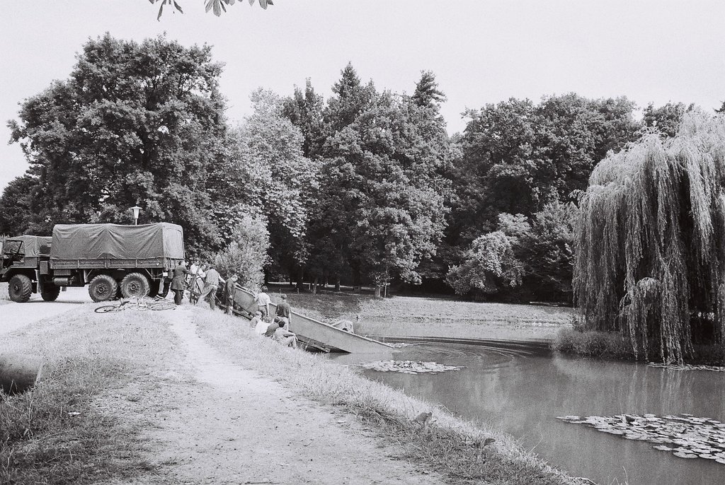 Prevoz čolnov in postavitev tribune za gledalce: TO - slovenska teritoriralna obramba.