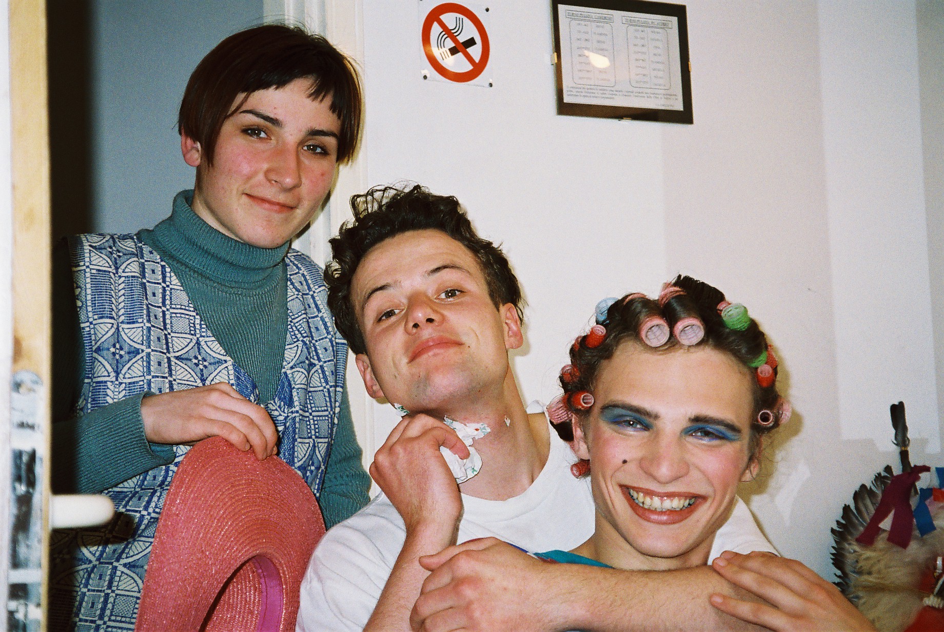 Preobrazba: kostumografka Stanka v maski Neša in Vojka pripravlja za dami Estelle in Ines.