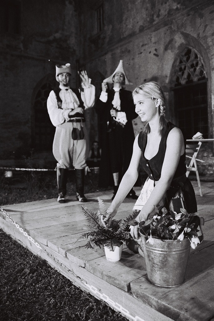 Gospoda sadita rožice, Mirandolina jih pa zaliva.