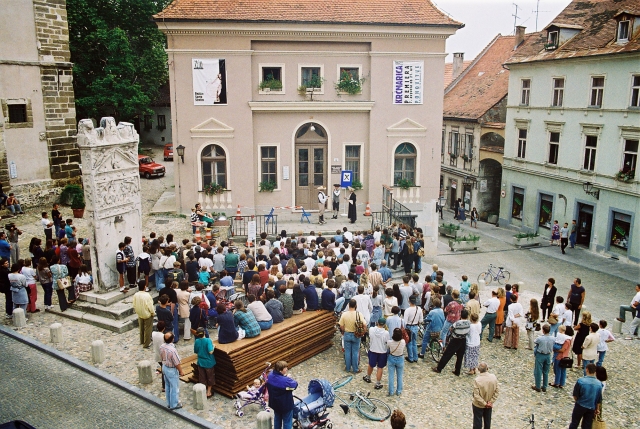 "Gostovanje" doma, pred ptujskim gledališčem.