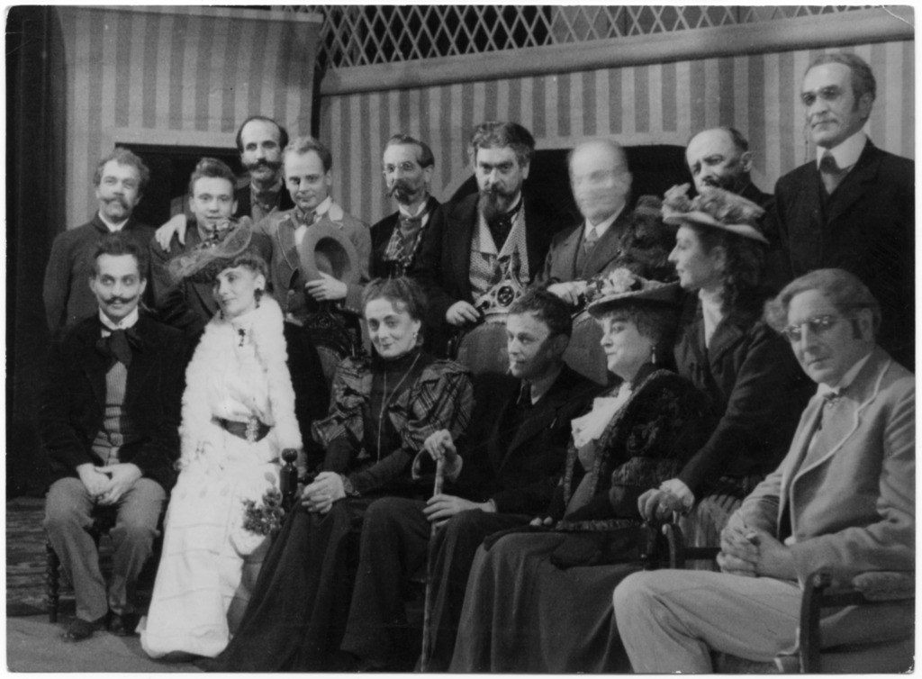 Bojan Stupica (v sredini) je režiral in zasnoval sceno "slavnostne otvoritvene predstave prve sezone po osvoboditvi". Nastopili so: Lojze Drenovec (Aleksej pl. Gornik), Ivan Cesar (Dr. Anton Grozd), Elvira Kralj (Katarina, njegova žena), Vida Juvan (Matilda, njegova nečakinja), Vladimir Skrbinšek (Dr. Pavel Gruden), Sava Sever (Helena, njegova žena), Fran Lipah (Jožef Mrmolja), Pavel Kovič (Klander), Polonca Juvan (Mrmoljevka), Slavko Jan (Julijan Ščuka), Bojan Peček (Siratka), Branko Miklavc (Fran Kadivec), Anton Potušek (Profesor Kremžar), Fran Milčinski (Stébelce), Vera Remčeva (Hišna pri Grudnovih), Milan Brezigar (Prvi občinski svetnik), Hinko Košak (Drugi občinski svetnik), Drago Makuc (Peter), Nace Simončič (Slabo oblečen mlad človek). Napis na zadnji strani fotografije: "Ivan Cankar: Za narodov blagor, 17. 10. 1945, SNG. Ansambel. Po premieri." Na zadnji strani tudi žig in napis: Foto oddelek Tiskovnega urada, Predsedstvo narodne vlade Slovenije, film 623, foto A. Smolej (slednje je prečrtano). Evidentiranje in digitalizacija: Slovenski gledališki muzej