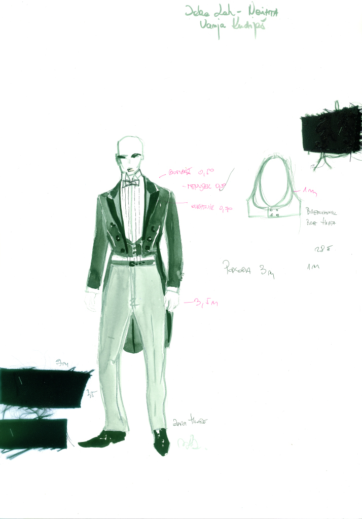 Režiser Jernej Lorenci, premiera 24. novembra 2011, Mestno gledališče ljubljansko Belinda Radulović je na FBS 2012 prejela Borštnikovo nagrado za kostumografijo. Obrazložitev strokovne žirije 47. FBS: »Oblikovanje kostumov je izjemno povezano s konceptom celotne uprizoritve. Z velikim občutkom za igralčev ali igralkin karakter in vedenje znotraj zgodbe kostumografka oblikuje na eni strani zelo oseben, na lik vezan kostum, ki omogoča igralcu/igralki navidezno razgaljenost, ki igralca odpira in podpira, na drugi strani pa zavestno ostaja 'podrejen' zgodbi in odrski akciji. Če v prvem delu kostumografija ostaja vezana na čas, v katerem se zgodba začne odvijati, se v poteku dogajanja kostum neopazno preobrazi in preide v sodobnost. Likovno izjemno natančno premišljena kostumografija, kjer ni nič odveč in nič ne manjka, pomaga ustvariti verjetnost lika, odrskega dogodka in zgodbe.«
