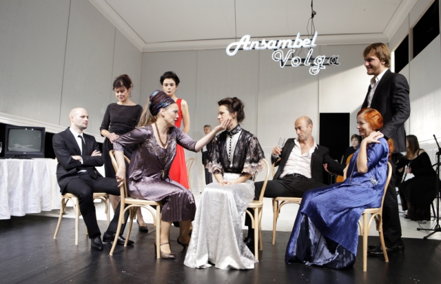Jaka Lah (Vanja Kudrjaš), Maja Boh (Glaša), Jette Ostan Verjup (Fjokluša), Alja Kapun k.g. (Varvara), Nika Rozman (Katerina), Boris Ostan (Savel Prokofjič Dikoj), Jožica Avbelj (Marfa Ignatjevna Kabanova), Matej Puc (Tihon Ivanič Kabanov), v ozadju Janez Starina (Kuligin) in ansambel Volga