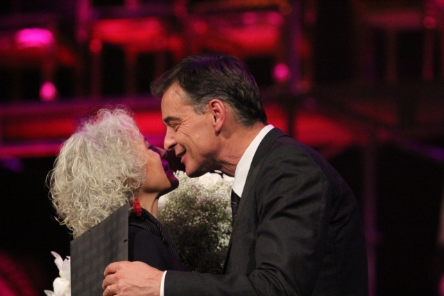 Alja Predan, umetniška direktorica Festivala Borštnikovo srečanje, in Igor Samobor, dobitnik Borštnikovega prstana 2012