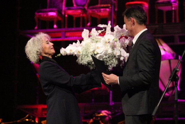 Alja Predan, umetniška direktorica Festivala Borštnikovo srečanje, in Igor Samobor, dobitnik Borštnikovega prstana 2012