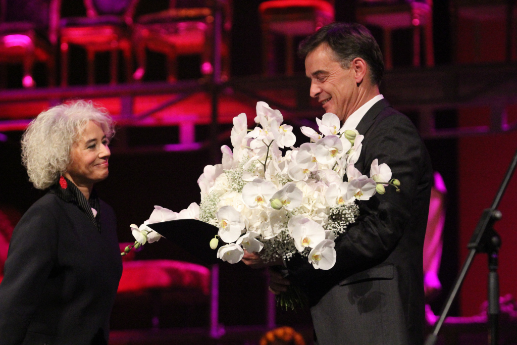 Alja Predan, umetniška direktorica Festivala Borštnikovo srečanje, in Igor Samobor, dobitnik Borštnikovega prstana 2012