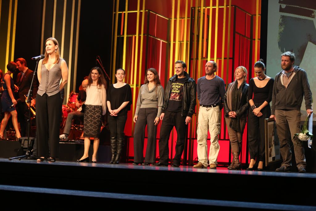 Ekipa Ponorele lokomotive: spredaj igralka Maja Sever, zadaj igralki Petra Govc in Nina Ivanišin, dramaturginja Eva Kraševec, igralca Aljaž Jovanović in Janez Škof, kostumografka Belinda Radulović, igralka Tina Vrbnjak in režiser Jernej Lorenci