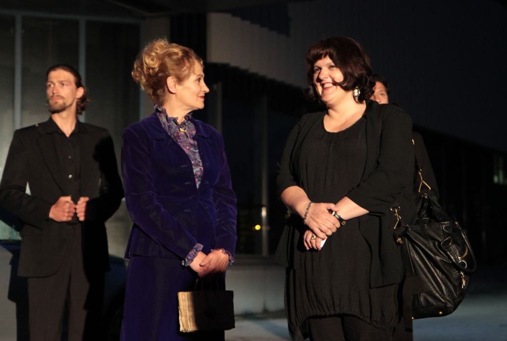 Na fotografiji: Tomo Tomšič (Varnostnik), Olga Kacjan (Ministrica za kulturo RS), ob njej direktorica SMG Uršula Cetinski