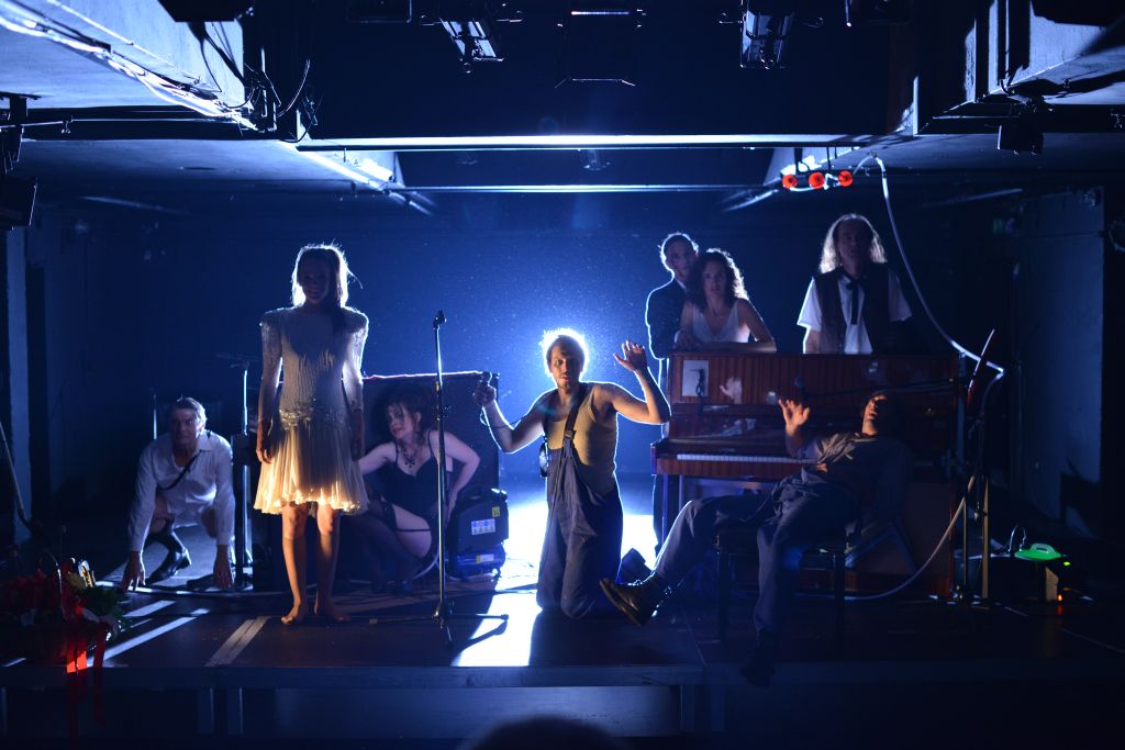 Na fotografiji: Zvone Hribar (Vlakovodja), Tina Vrbnjak (Julia Tomasik), Nina Ivanišin (Minna, grofica de Bernhelm), Aljaž Jovanović (Mikołay Woytaszek), Gorazd Logar (Walery Kapuściński), Petra Govc (Mira Kapuścińska), Janez Škof (Zygfryd Tengier) in Matija Rozman (Turbulencjusz Dmidrygier)