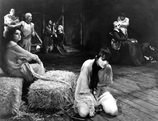 Na fotografiji: V ospredju Jagoda Tovirac (Prva blodnica) in Milada Kalezić (Druga blodnica), zadaj Iztok Valič (Hudabivški Ožbej), Anica Kumer (Gola blodnica), Igor Sancin (Vernik), Jana Šmid (Hudabivška Burga), Bruno Baranović (Hudabivški Gaber), Borut Alujevič (Hlapec) in Drago Kastelic (Hudabivški Tilen)