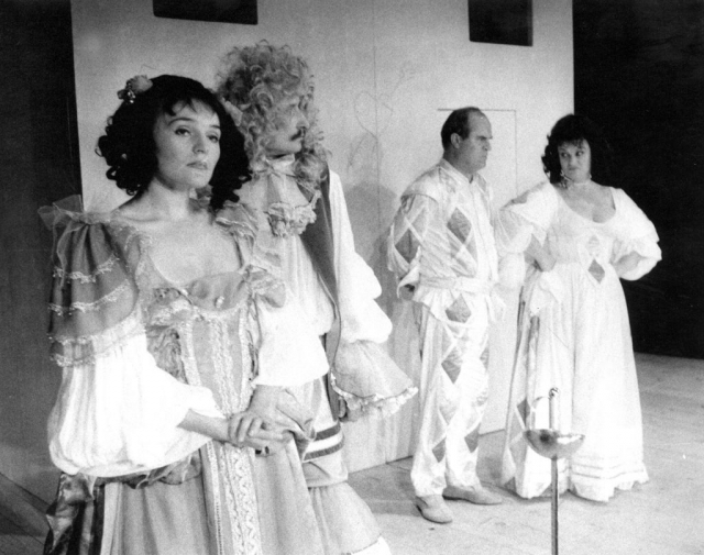 Na fotografiji: Igra Sganarel ali Namišljeni rogonosec: Milada Kalezić (Selija), Zvone Agrež (Lelij), Miro Podjed (Sganarel) in Ljerka Belak (Sganarelova)