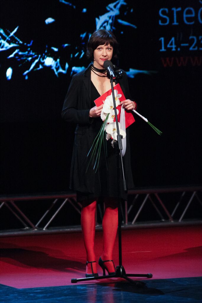 Na fotografiji: Janja Majzelj (Borštnikova nagrada za igro za vlogo Zlodeja v uprizoritvi Pohujšanje v dolini šentflorjanski v izvedbi Slovenskega mladinskega gledališča)