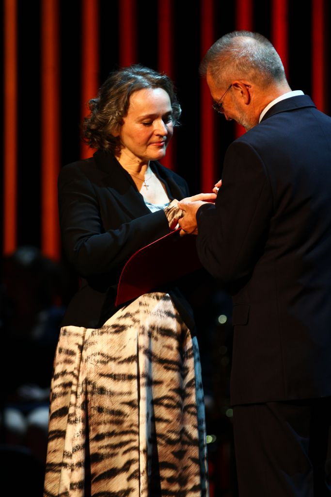 Na fotografiji: Milada Kalezić, dobitnica Borštnikovega prstana 2011, in Aleš Jan, predsednik žirije za Borštnikov prstan