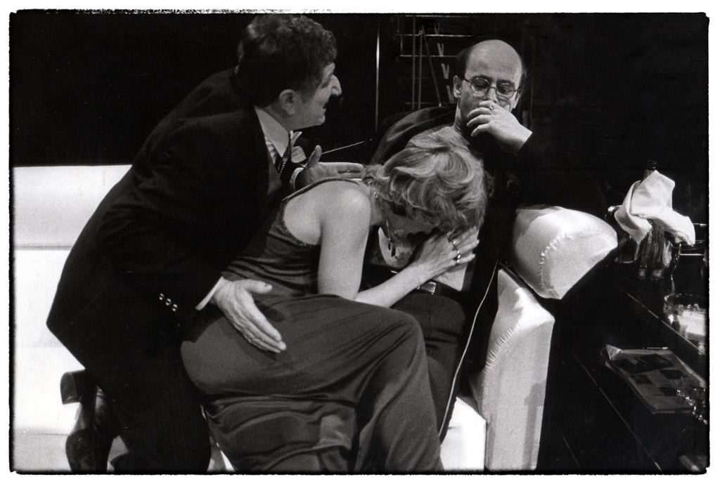 Na fotografiji: Marjan Bačko (Direktor gledališča), Anica Veble (Verena Schneider), Vlado Novak (Pisatelj)