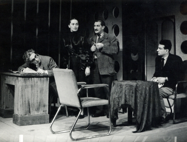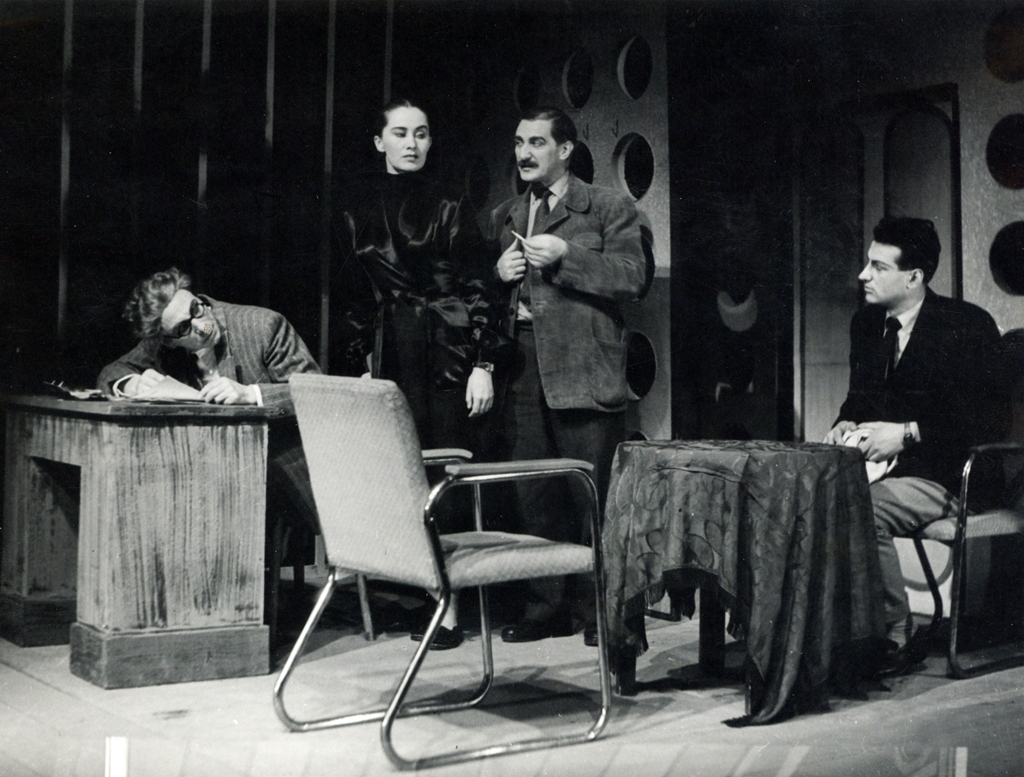 Na fotografiji: Anton Terpin (Drago Čemrov), Angelca Jenčič Janko (Zora Štritof), Jože Samec (Grega Dimič), Hugo Florjančič (Bine Rilc)
