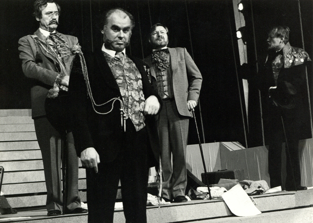 Na fotografiji: Janez Albreht (Jožef Mrmolja), Danilo Benedičič (Dr. Anton Grozd), Marjan Hlastec (Profesor Kremžar), Dušan Škedl (Občinski svetnik)