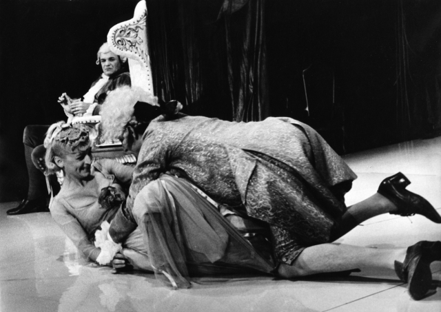 Na fotografiji: v ozadju Janez Bermež (Antonio Salieri), Anica Kumer (Constanze Weber), Zvone Agrež (Wolfgang Amadeus Mozart)