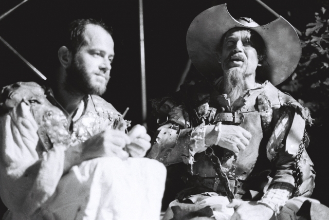 Na fotografiji: Bine Matoh (Sančo Pansa), Aleksander Krošl (Alonso Kihana, se pravi Don Kihot iz Manče)