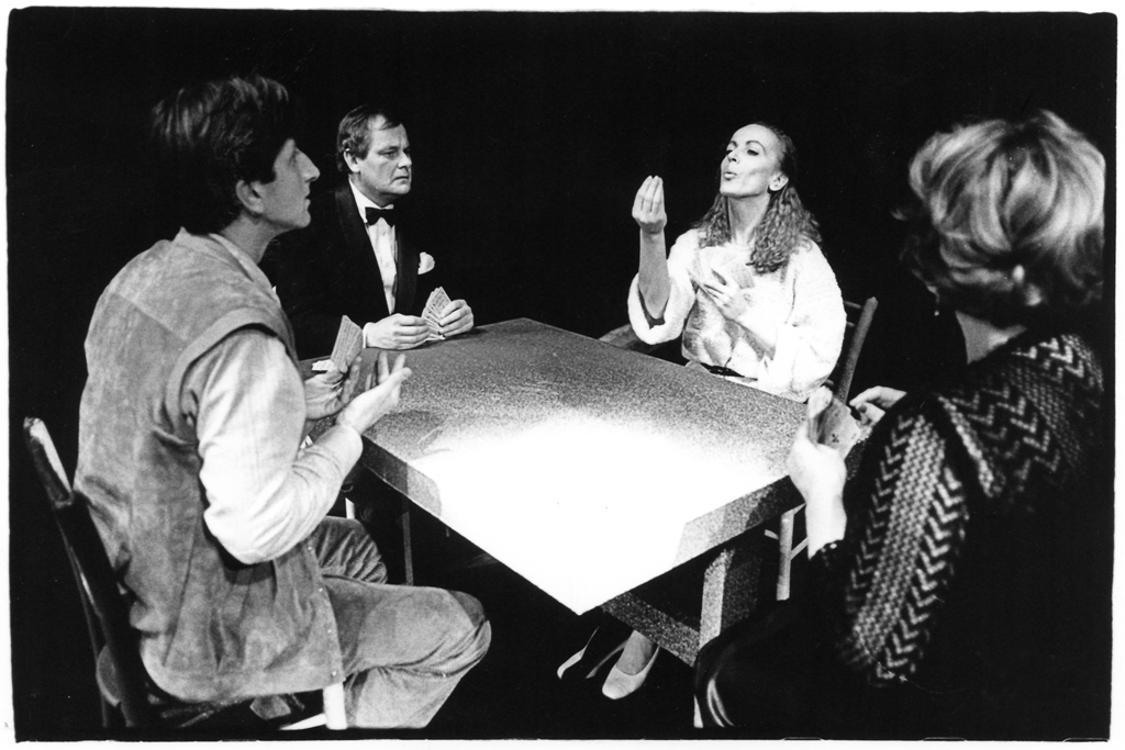Na fotografiji: Slavko Cerjak (James Leeds), Evgen Car (Gospod Franklin), Jožica Avbelj (Sara Norman), Maja Šugman (Gospa Norman)
