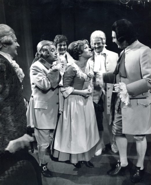 Na fotografiji: Marjan Bačko (Baron Žiga Zois), Volodja Peer (Dr. Franc Repič), Evgen Car (Dr. Jožef Piller), Minu Kjuder (Micka), Jože Zupan (Dr. Janez Mrak), Boris Kočevar (Anton Makovic)