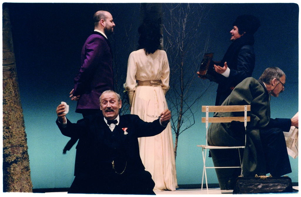 Na fotografiji: Dare Valič (Fjodor Iljič Kuligin), Jernej Šugman (Nikolaj Lvovič Tuzenbah), Saša Pavček (Irina), Vojko Zidar (Aleksej Petrovič Fedotik), Boris Juh (Ivan Romanovič Čebutikin)