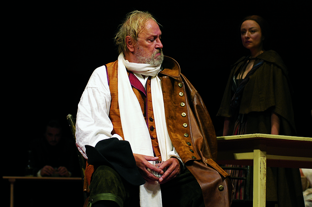 Na fotografiji: Dare Valič (Poljanec) in Nataša Barbara Gračner (Katarina) v predstavi Katarina, pav in jezuit v režiji Janeza Pipana.